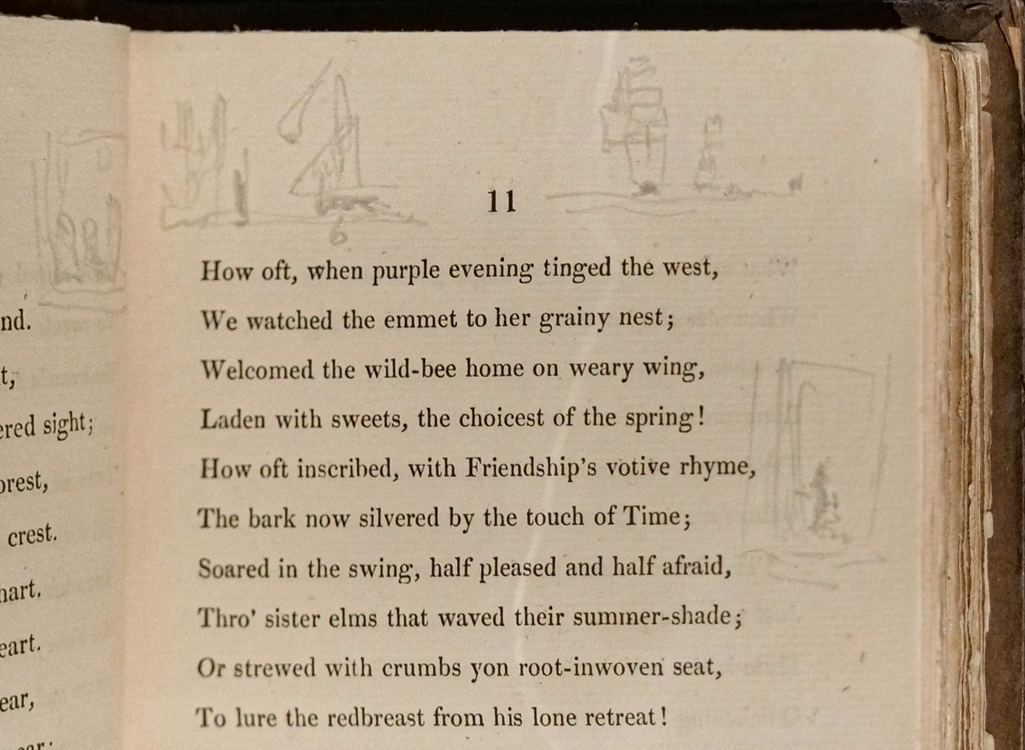 Turner's copy of Rogers's Poems - Page 11 of the un-illustrated and unsuccessful version - with Turner developing ideas in tiny pencil sketches in the margins - This copy is part of the Turner Bequest held by Tate Britain. This image is Public Domain