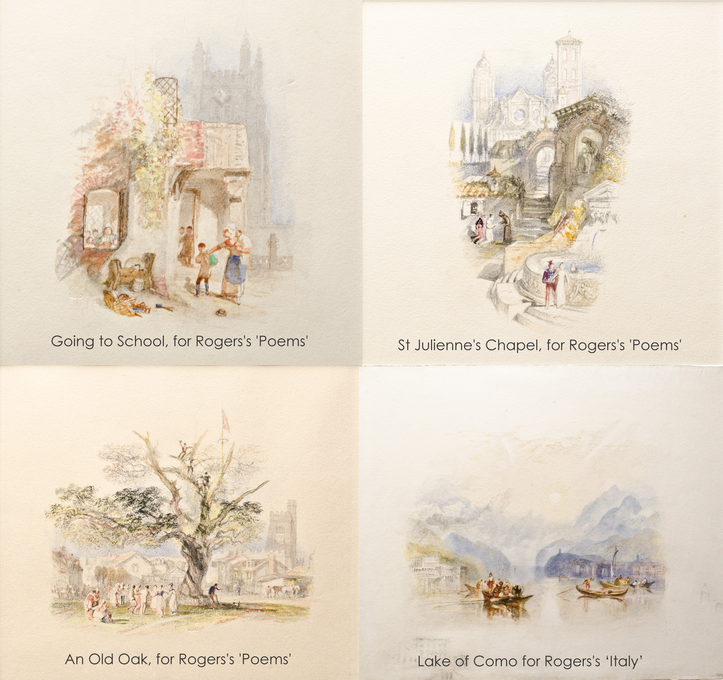 6 Vignette watercolours, Tate D27715, D27703, D27691, D27667, by JMW Turner (1775–1851) for Rogers’s Poems and Italy. Photography: John Lumby Bishop